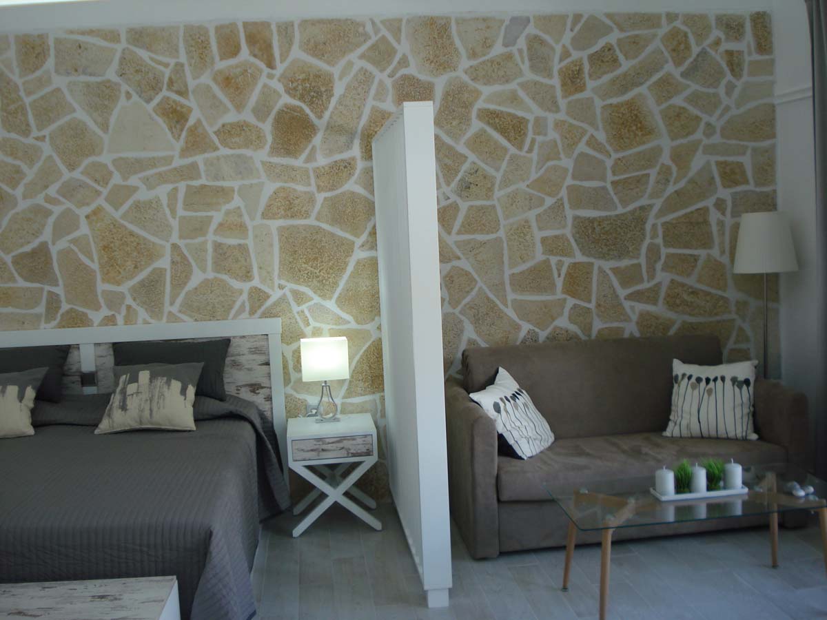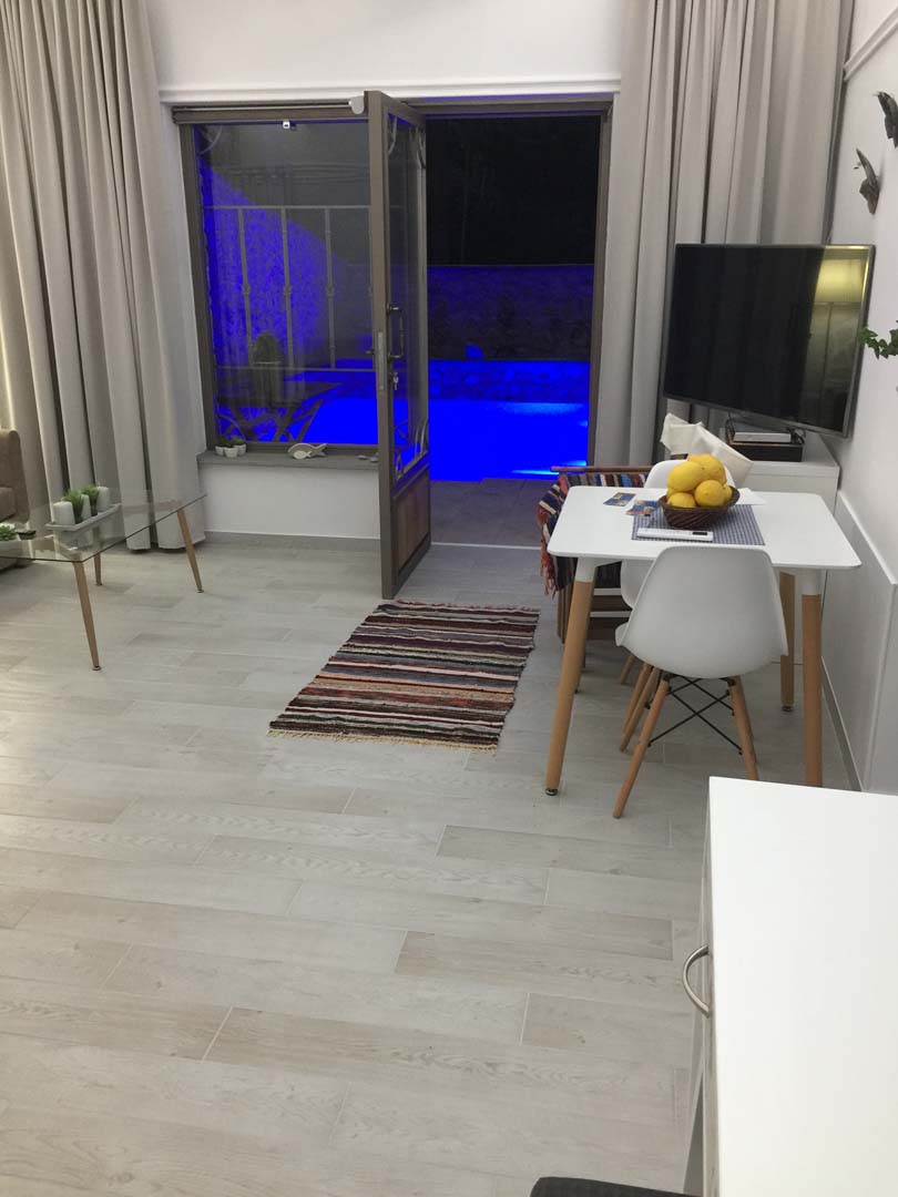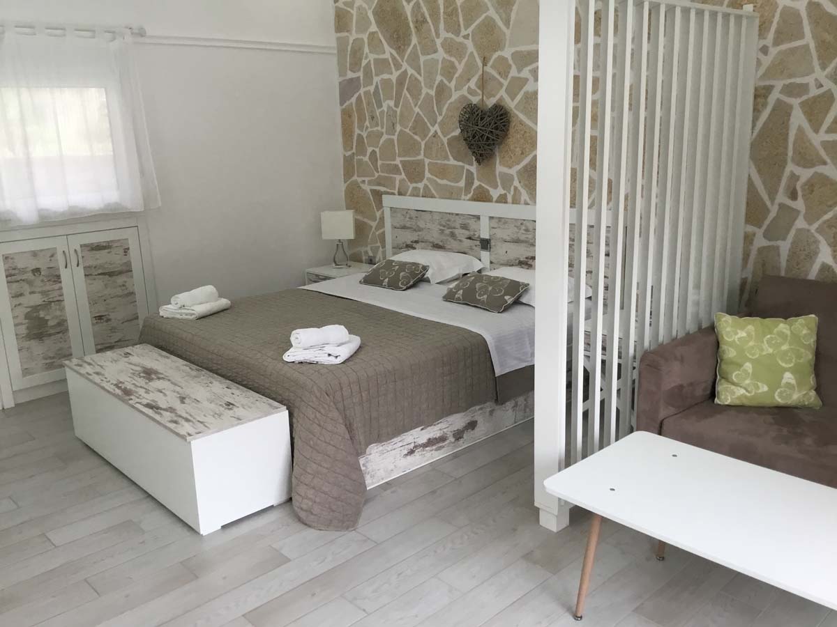 Η βίλα διαθέτει έναν ενιαίο χώρο που χρησιμεύει ως υπνοδωμάτιο και καθιστικό και χωρίζεται από παραβάν. Το καθιστικό διαθέτει έναν καναπέ-κρεβάτι που θα μπορούσε να φιλοξενήσει ένα τρίτο άτομο ή ένα παιδί. Μια βρεφική κούνια και ένα καρεκλάκι μπορούν να παρασχεθούν και να κανονιστούν με τους ιδιοκτήτες κατά την κράτηση.